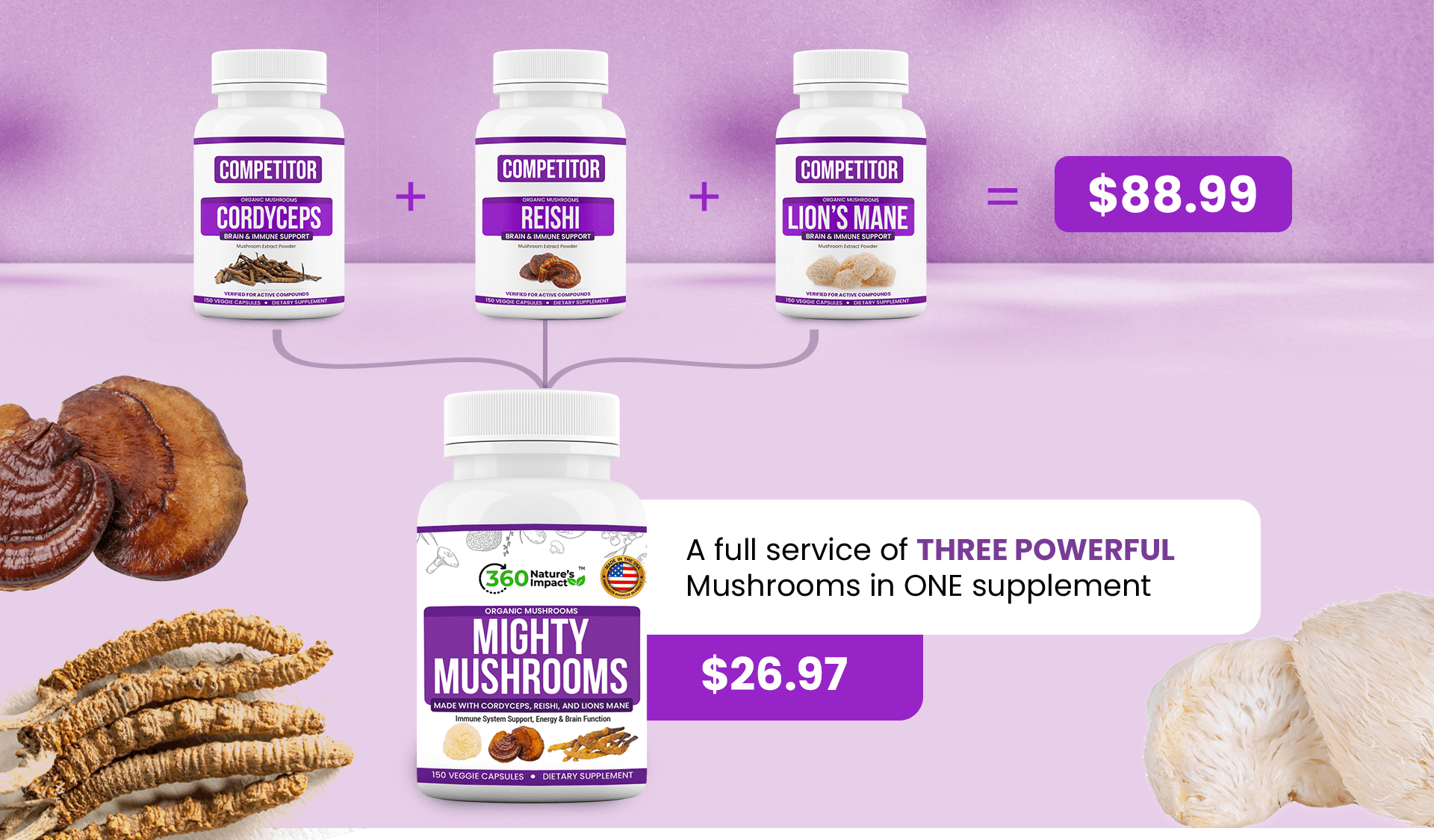 Blend of Three Powerful Mushrooms in a Daily Dose |